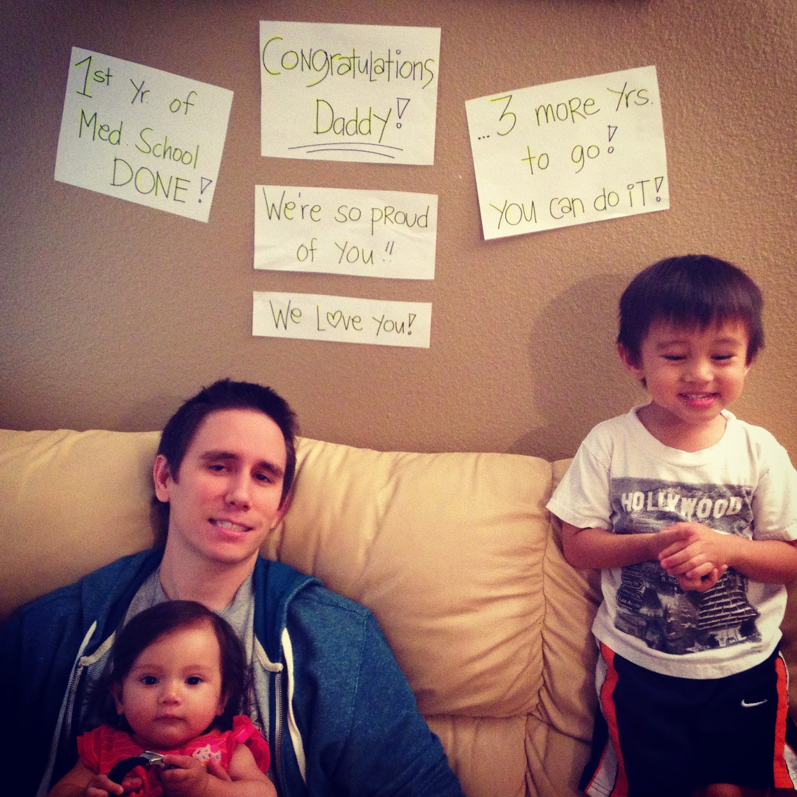 It's official! Jamie is DONE with his 1st yr. in Med School! It was a long...busy year. Not easy at all. 1 yr. down 3 more to go. We're really grateful for this wonderful blessing. Now it's time to have fun and enjoy the break before classes start again. We're so proud of you Daddy. WE LOVE YOU!